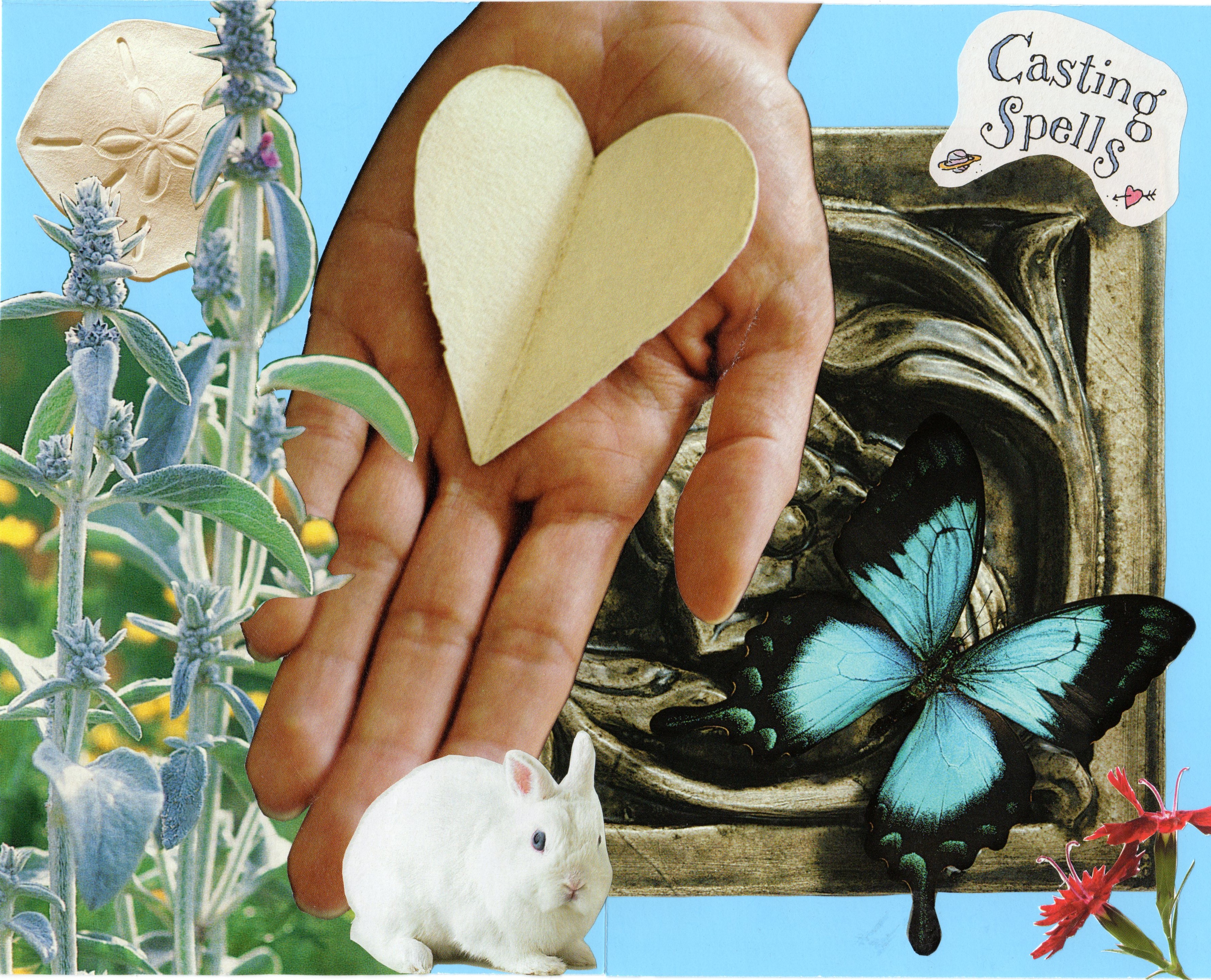 Collage can be anything you want it to be. You can cut pictures out of magazines in their original squares and stick them on a piece of paper. You can obsessively trim tiny antennae on the picture of a butterfly before sticking it onto another picture of a mountain range. You can add text. You can leave lots of blank space, or you can fill your page completely. You can take your time or finish it all in under an hour. (I tend to be the obsessive, trim-around-the-antennae type of collager.)